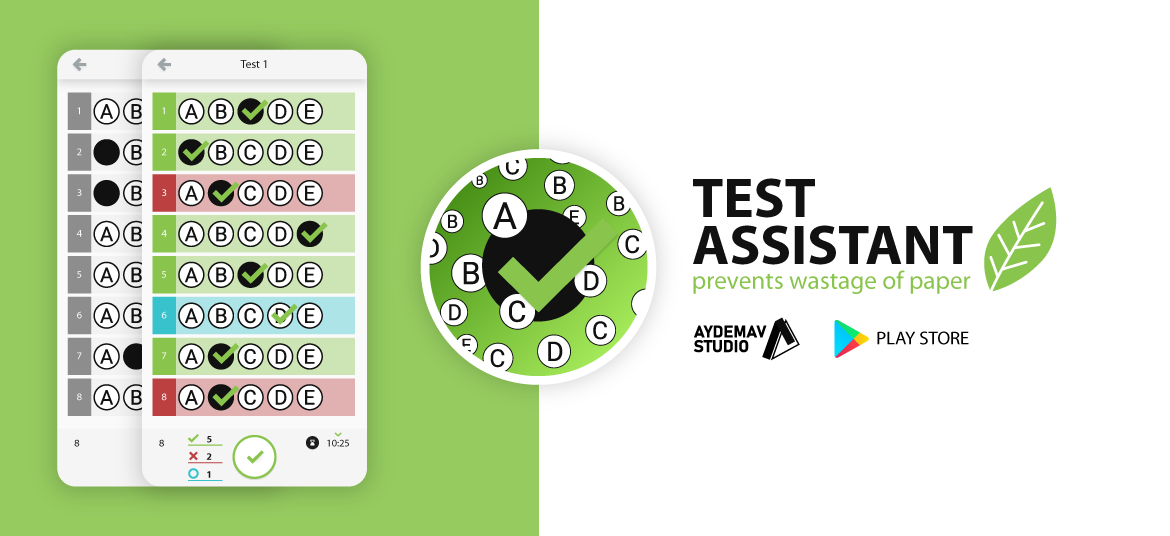 Mark the answers to the questions you have solved with the Test Assistant to your phone, not to the question bank. Enter the correct answers and view your result immediately. Resolve the question bank or give it to your friend. Prevent paper wastage.